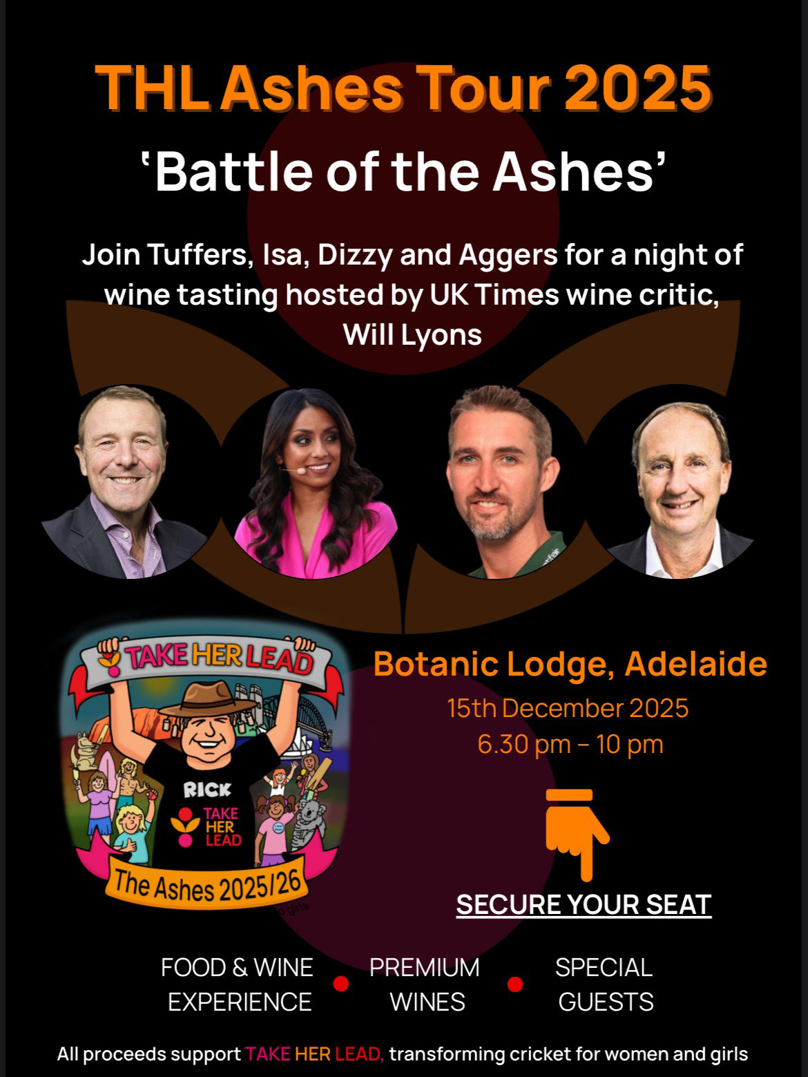 With only 35 places available, this promises to be a warm, engaging, and unforgettable evening of cricket, wine, and connection.