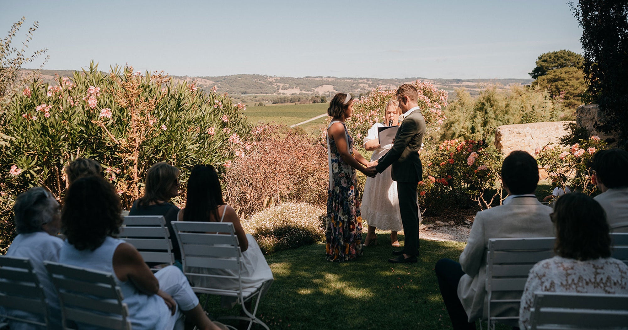 The 2.5 acre garden is set on a sandhill with sweeping 360 degree views across McLaren Vale and the Mount Lofty Ranges. The garden, surrounded by vineyards on all sides, is beautifully terraced with a real sense of the Mediterranean. Imaginative plantings and the bold use of colour, set against the cobalt blue skies of McLaren Vale, means the garden looks beautiful all year around, perfectly framing those 360 degree views. The garden offers a variety of seats, arches, pillars, walls, hedges and a wisteria arbor, providing a choice of spaces for your ceremony and photos.